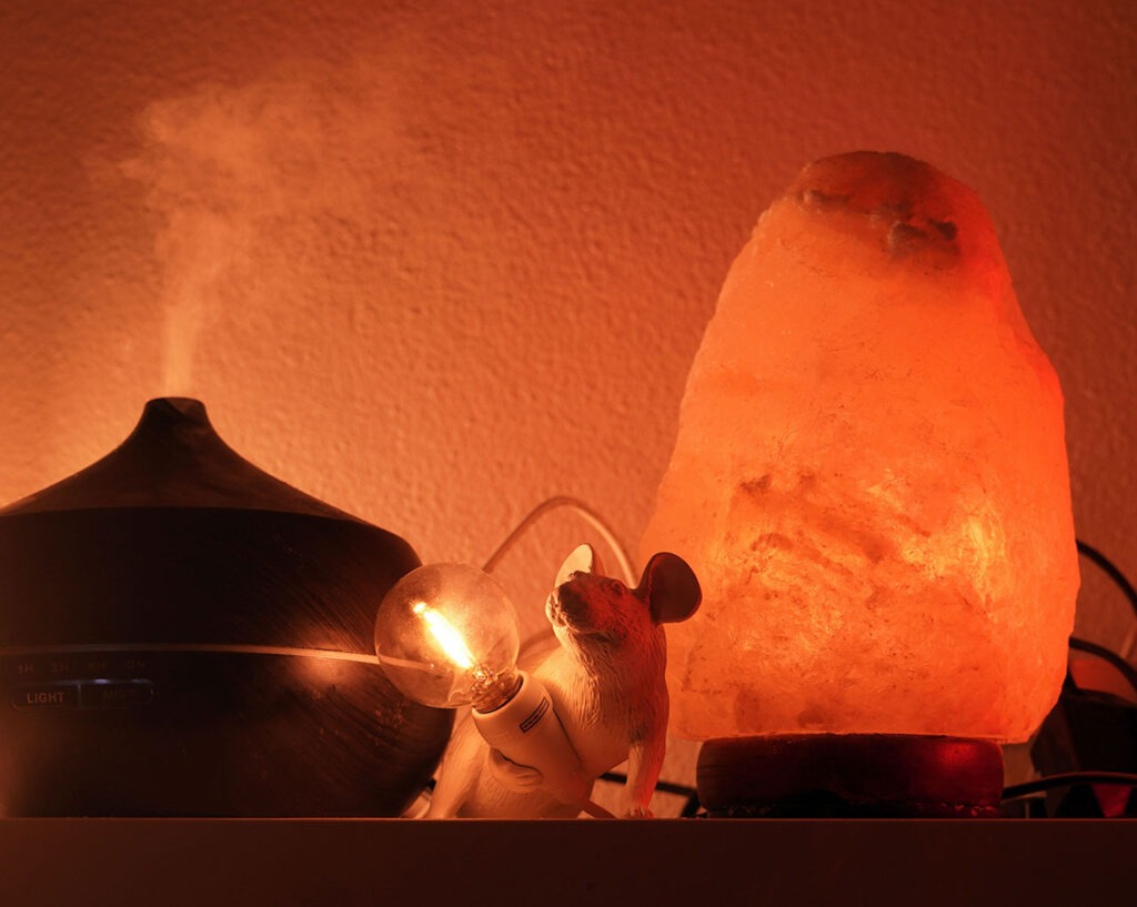 La qualità dell’aria è fondamentale per il benessere. Per questo utilizzo un purificatore d’aria che aiuta anche le persone allergiche a respirare meglio. In più, ho scelto di arricchire lo studio con piante come pothos e sansevieria, note per la loro capacità di ossigenare e rendere l’aria più salubre.